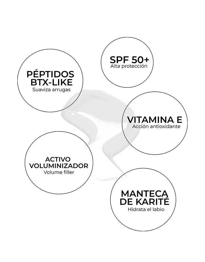 - Su lipo užpildančiu efektu, kuris padidina lūpų apimtį dėl sezamų aliejaus